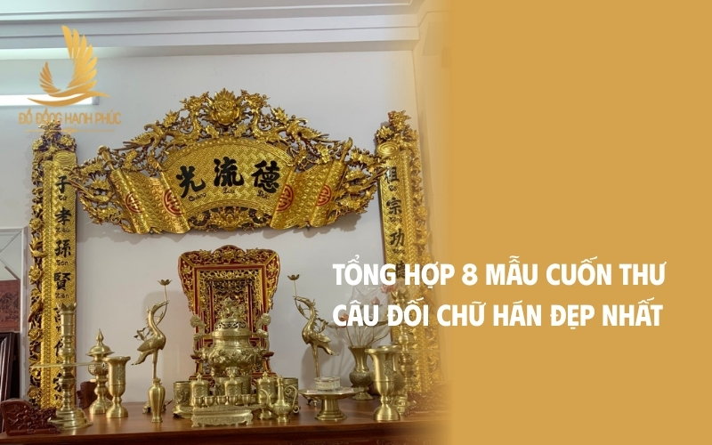 Mẫu cuốn thư “Đức Lưu Quang” bằng chữ quốc ngữ là lựa chọn phổ biến cho bàn thờ gia tiên nhờ ý nghĩa sâu sắc về công đức tổ tiên luôn tỏa sáng, lưu truyền mãi về sau. Thiết kế thường mang phong cách trang nghiêm, hài hòa với hoa văn truyền thống như rồng, mây hoặc lá lật. Nhờ sử dụng chữ Việt, nội dung trở nên dễ hiểu, phù hợp mọi thế hệ, đặc biệt thích hợp với không gian thờ gia đình hiện đại lẫn truyền thống.