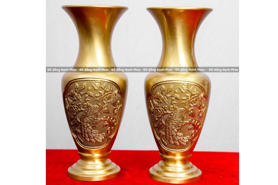 - Bình hoa mai điểu đồng vàng sáng bóng: Được chế tác tinh xảo với lớp đồng vàng lấp lánh, mang đến vẻ đẹp sang trọng và nổi bật.