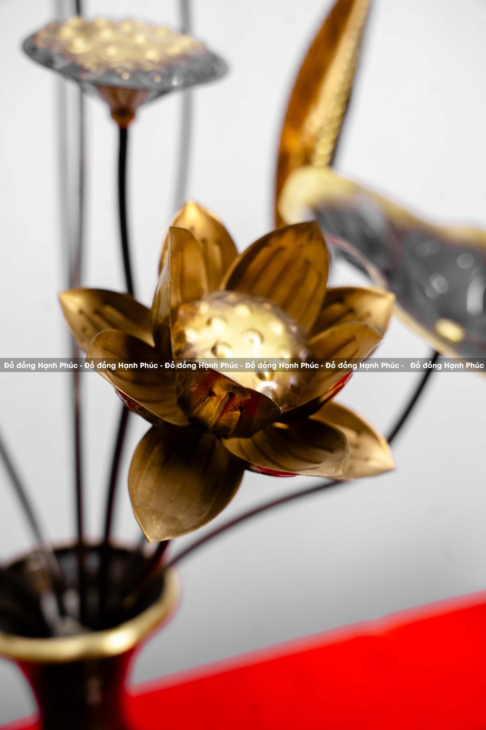 Chất liệu đồng cao cấp, bền bỉ theo thời gian: Cánh hoa sen được chế tác từ chất liệu đồng nguyên chất, bao gồm đồng vàng hoặc đồng đỏ. Với đặc tính không cong vênh, không mối mọt như gỗ, sản phẩm đảm bảo độ bền vượt trội và giữ được vẻ đẹp lâu dài.