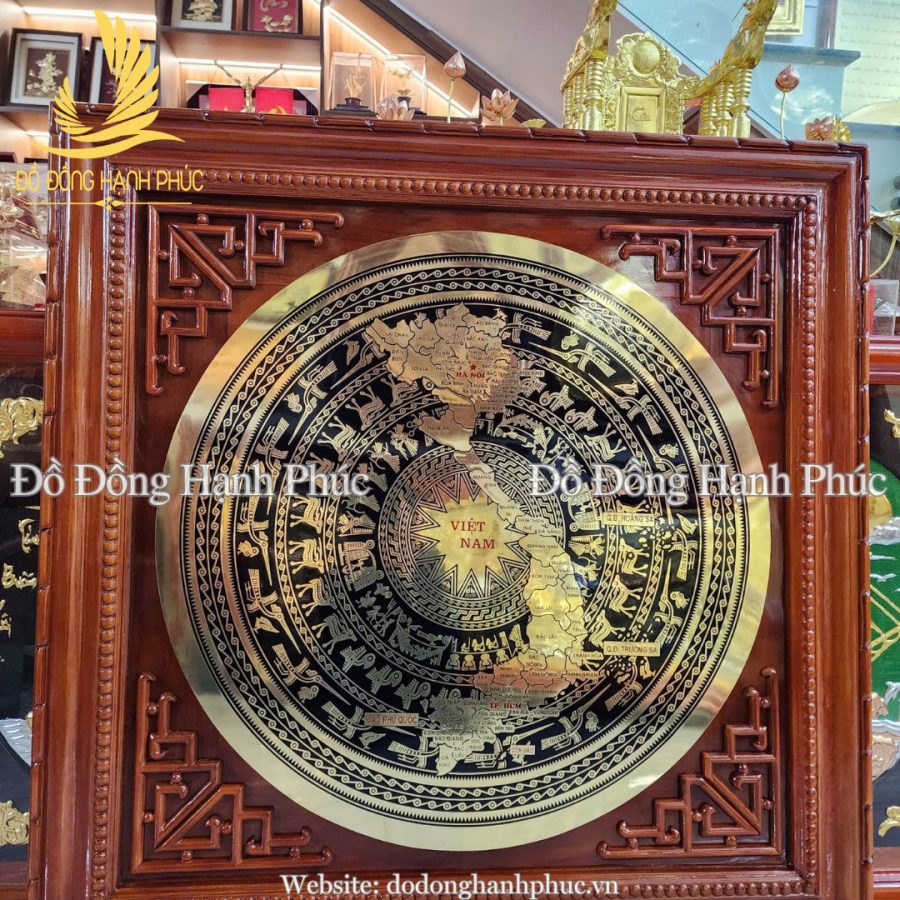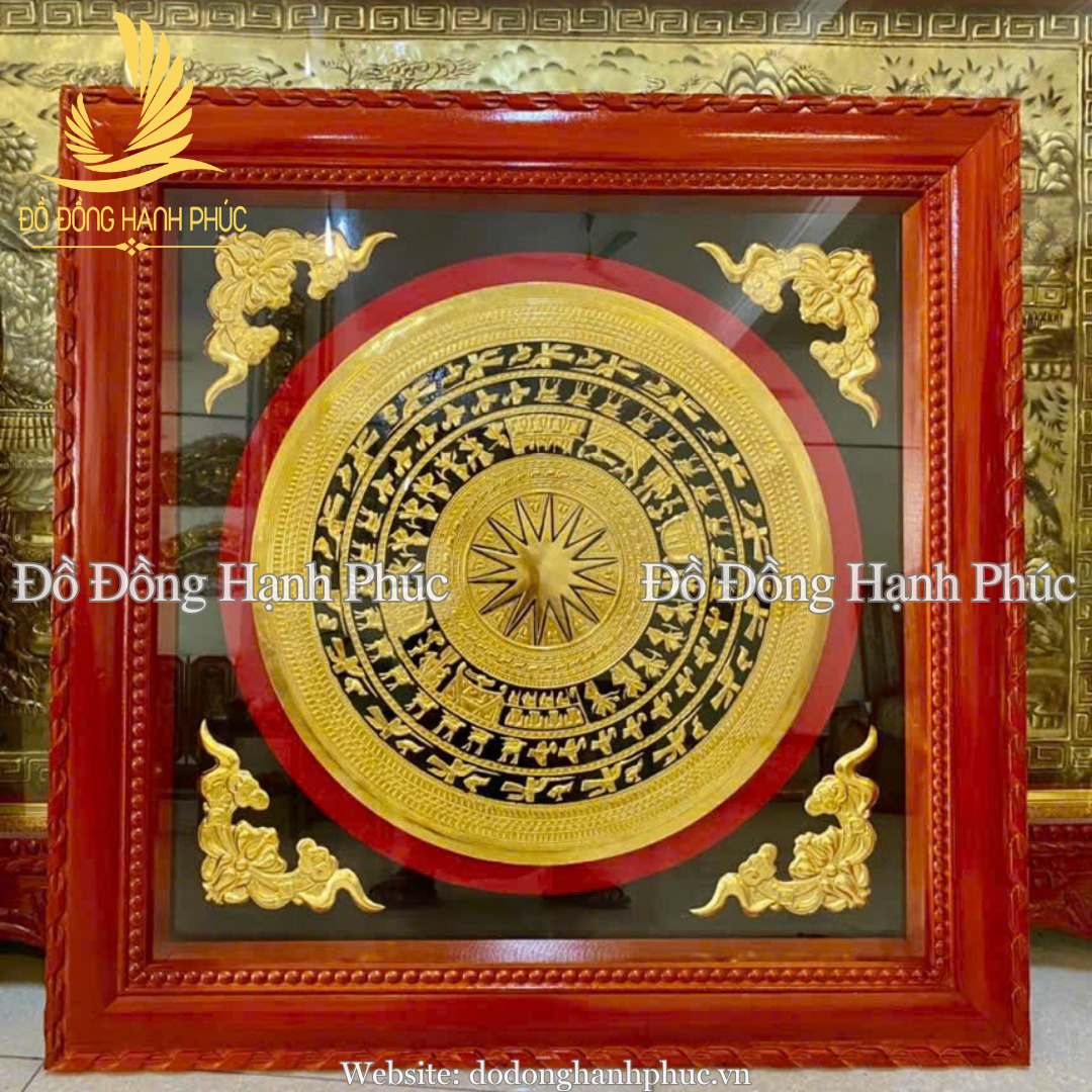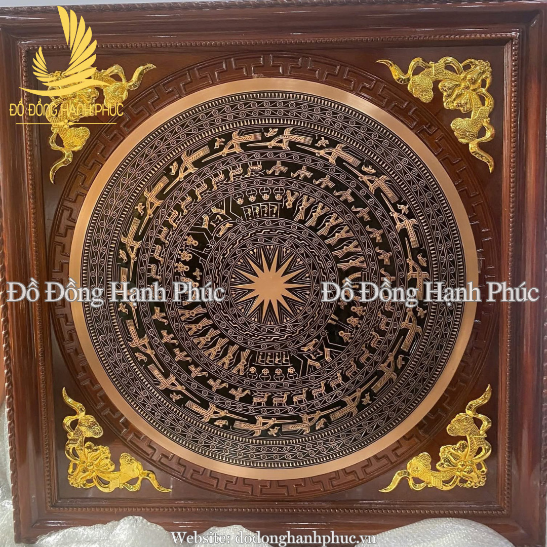 • Hoa văn: Họa tiết trống đồng Đông Sơn chạm nổi sắc nét: mặt trời, chim Lạc, người giã gạo, hội mùa; đường nét tinh xảo, sáng nổi rõ trên nền đen.