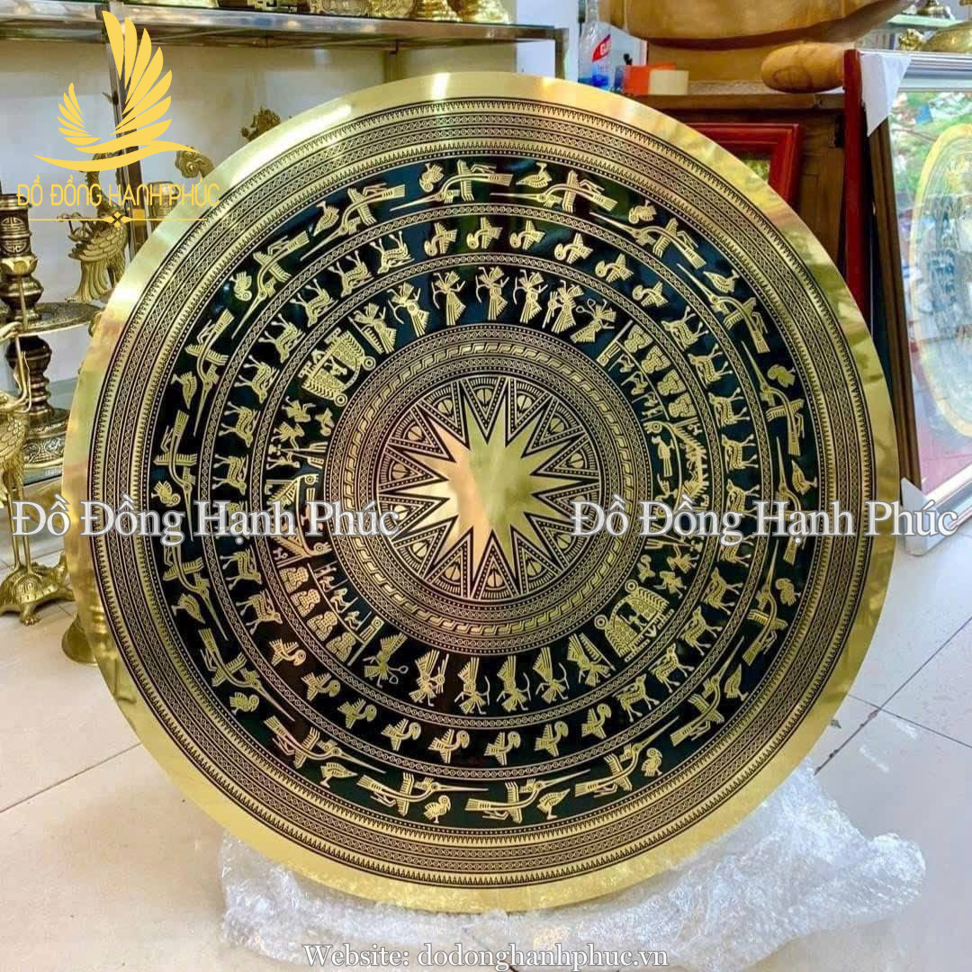 • Kiểu dáng: Mặt trống hoàn thiện nền đen – hoa văn đồng nổi, có thể đi kèm khung gỗ tự nhiên hoặc giá đỡ; tổng thể sang trọng và đậm chất truyền thống.